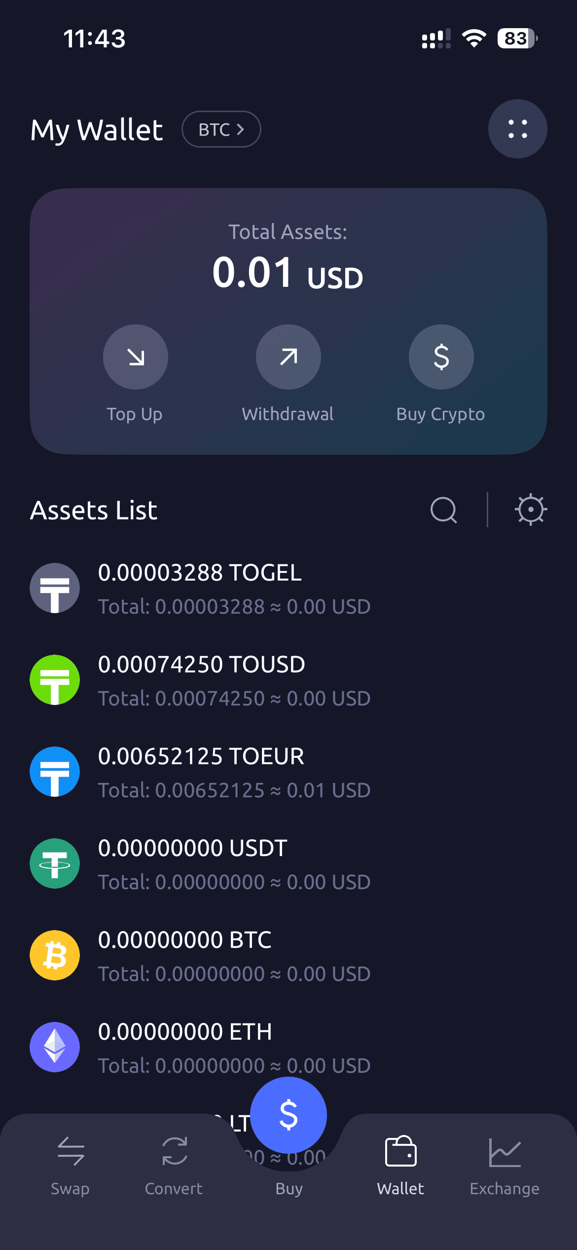 The Swap function allows users to exchange one crypto asset for another instantly. There is no need to use charts or trading interfaces. Users simply select the crypto they want to swap and choose the asset they want to receive.