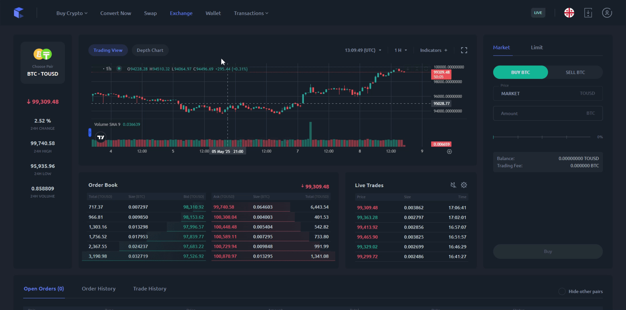 The Convert method is one of the easiest ways to buy Bitcoin on Cryptal, especially for first-time users. It allows users to exchange Georgian Lari (GEL) into Bitcoin with just a few clicks, without using trading charts or placing orders. This method is ideal for beginners who want a simple and clear buying experience.