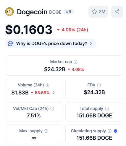დოჯქოინის საბაზრო სტატისტიკა (2025):